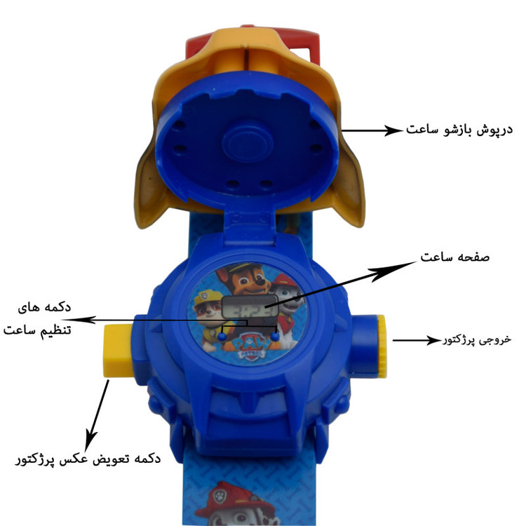 ساعت مچی دیجیتال بچه گانه مدل سگهای نگهبان، ساعت مچی زیبا و جذابی است که علاوه بر اینکه یک ساعت مچی فوق العاده برای بچه ها است، مجهز به یک پروژکتور زیبا برای نمایش 24 تصویر فوق العاده از کارتون سگ های نگهبان نیز هست. بند نرم و زیبا، قابلیت تنظیم آسان ساعت، تنظیم تاریخ، کرنومتر و نمایش تصاویر زیبا به صورت پروژکتور از جمله امکانات این ساعت است. علاوه بر اینها رنگبندی عالی و طراحی زیبای تصاویری از کارتون سگهای نگهبان همراه با کیفیت خوب مواد به کار رفته، این محصول را به هدیه ای درجه یک برای بچه ها تبدیل کرده است.