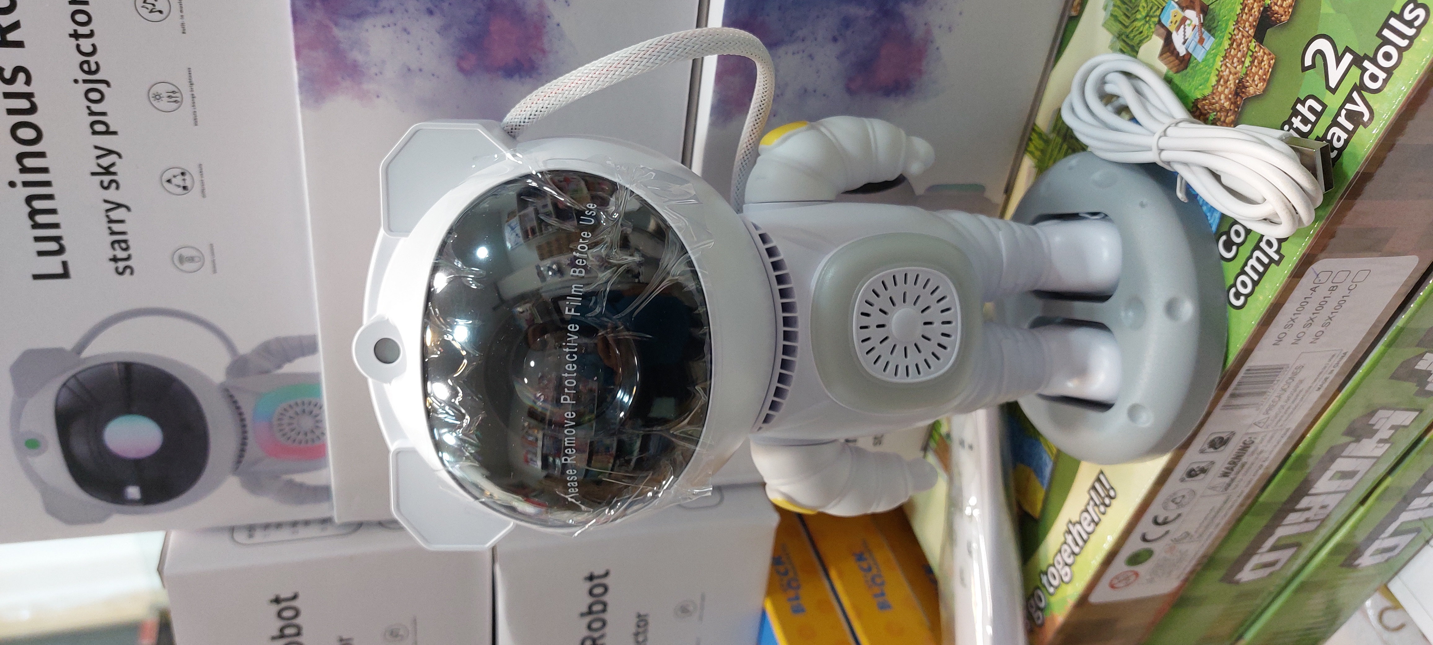 چراغ خواب رقص نور دار کهکشانی طرح فضانورد مدل بلوتوثی اسپیکر دار یک چراغ خواب یا نورپردازی با قابلیت پخش افکت تصویر زنده کهکشانی در رنگ های مختلف به همراه لیزر ستاره ای بر روی سقف و دیوار اتاق یا هر سطح دیگری است که به همراه افکت لیزر ستاره ای حس یک سفر کهکشانی را به شما میدهد . این رقص نور کهکشانی دارای یک اسپیکر بلوتوثی قوی در قسمت پشت سر خود می باشد که میتواند برای شما هر موسیقی را از طریق گوشی یا تبلت پخش نمایید تا بتوانید از آن لذت ببرید. همچنین قابلیت قرار دادن رم میکرو و پخش موزیک از طریق آن را دارا می باشد. تلفیق همزمان تصویر زنده کهکشانی و لیزر ستاره ای و اسپیکر بلوتوثی جذابیت اتاق خواب و یا هر محیطی که در آن قرار دارید را در هنگام شب چندین برابر میکند. این محصول دارای ریموت کنترل نیز می باشد که میتواند تمامی دستور های مورد نیاز از قبیل روشن و خاموش، ولوم صدا، میزان سرعت چرخش موتور، میزان نور پرژکتور یا لیزر را کم یا زیاد و یا برای روشن ماندن محصول تایمر تعریف کنید که سر ساعت مشخص شده خاموش بشود. همچنین قابلیت تغییر موزیک، قطع و وصل موزیک، تغییر مود و حالت های رنگی مختلف را دارا می باشد. این رقص نور جذاب دارای درگاه برق USB Type-c می باشد که می توانید آن را با پاوربانک یا آداپتور موبایل یا هر دستگاه دیگری روشن کنید و هرجایی که دوست دارید استفاده کنید و لذت ببرید. از دیگر ویژگی های این محصول قابلیت هماهنگی ریتم رقص نور با موزیک می باشد که آن را به یک رقص نور جذاب تبدیل کرده و مراسمات و جشن های شما را زیبا و دلنشین تر خواهد کرد.