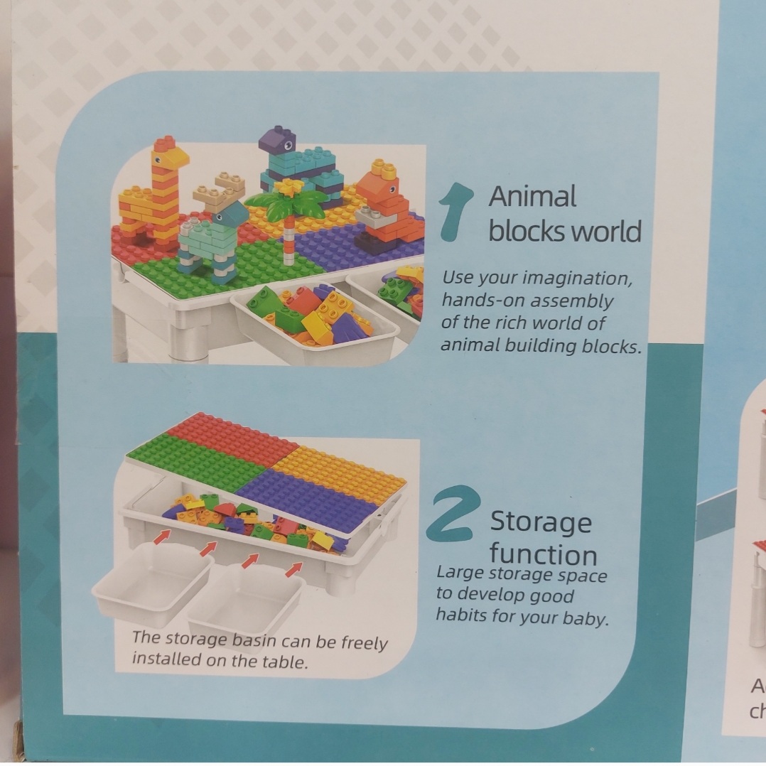میز و بلوکها از پلاستیک با کیفیت و بادوام ساخته شدهاند. طراحی با گوشههای گرد ایمنی کودکان را تضمین میکند. همچنین، ساختار سبک حمل و مونتاژ آن را آسان میکند و بلوکها به گونهای طراحی شدهاند که به راحتی از هم جدا نمیشوند.